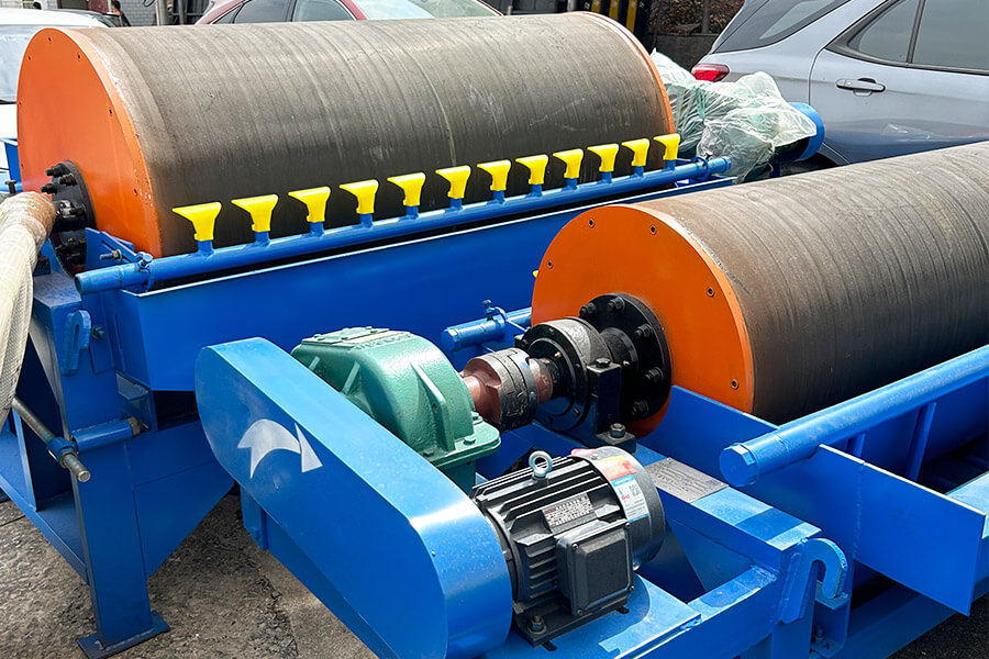 The wet drum magnetic separator is an environmentally friendly magnetic separation device developed to address the challenge of separating fine-grained, weakly magnetic minerals. It integrates an innovative design combining “weak magnetic drum iron removal + strong magnetic roller separation,” providing a stable and deep magnetic field that ensures superior adsorption capacity for fine-grained minerals. It is primarily suitable for wet separation of magnetic minerals such as magnetite, manganese ore, and ilmenite with a particle size of less than 3mm. It also undertakes purification operations in non-metallic minerals, building materials, and ceramics industries, removing magnetic impurities to meet the high-purity requirements of the glass and photovoltaic industries.