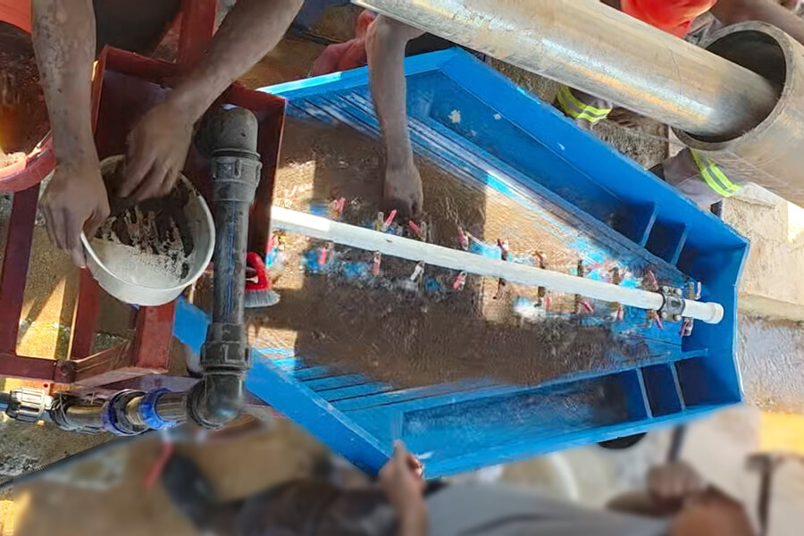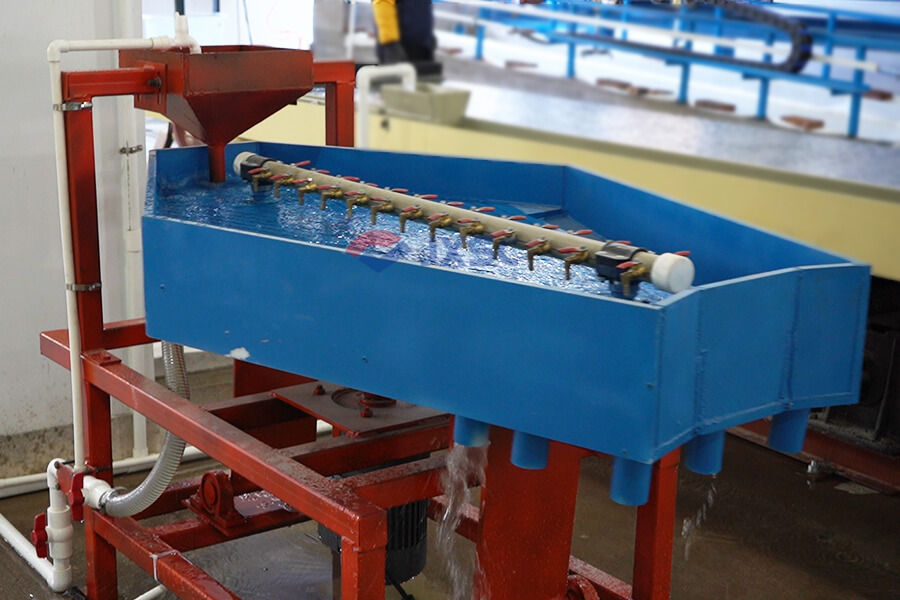 Features a symmetrical left and right partitioned design with corrugated grooves, allowing minerals of different specific gravities to distribute on the bed surface according to their density and particle size, resulting in clear mineral banding.